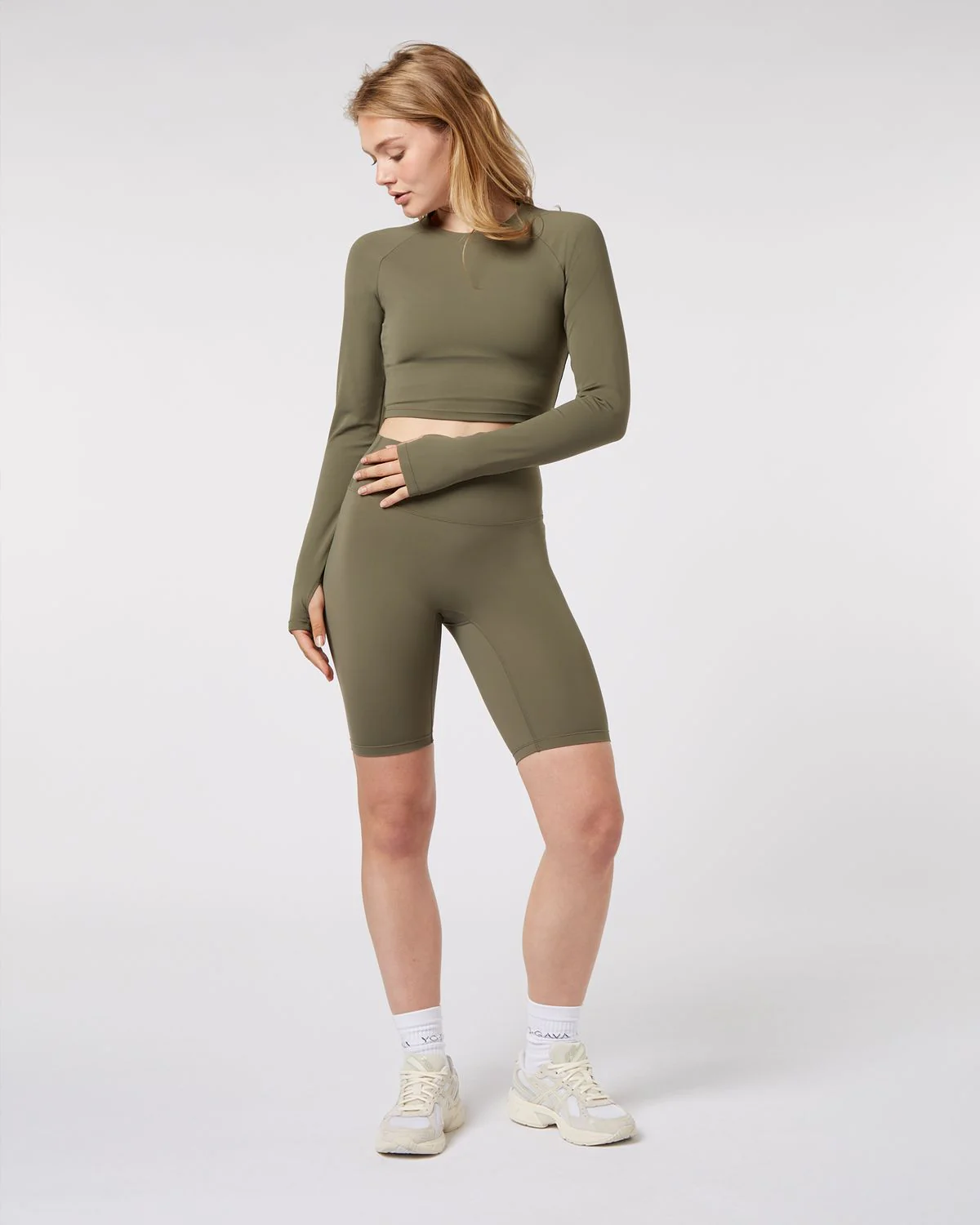 Long Sleeve Crop Top - Olive Green